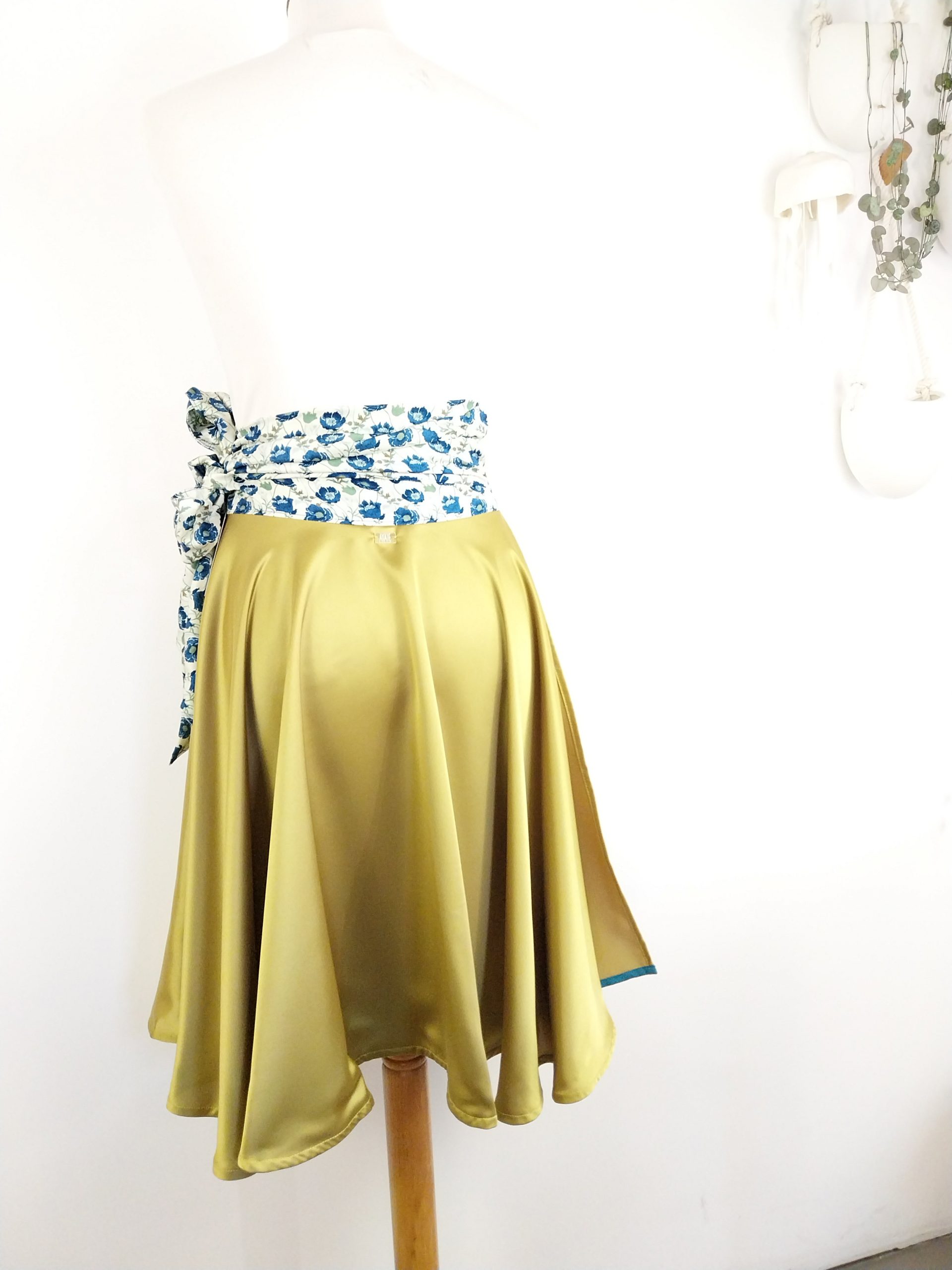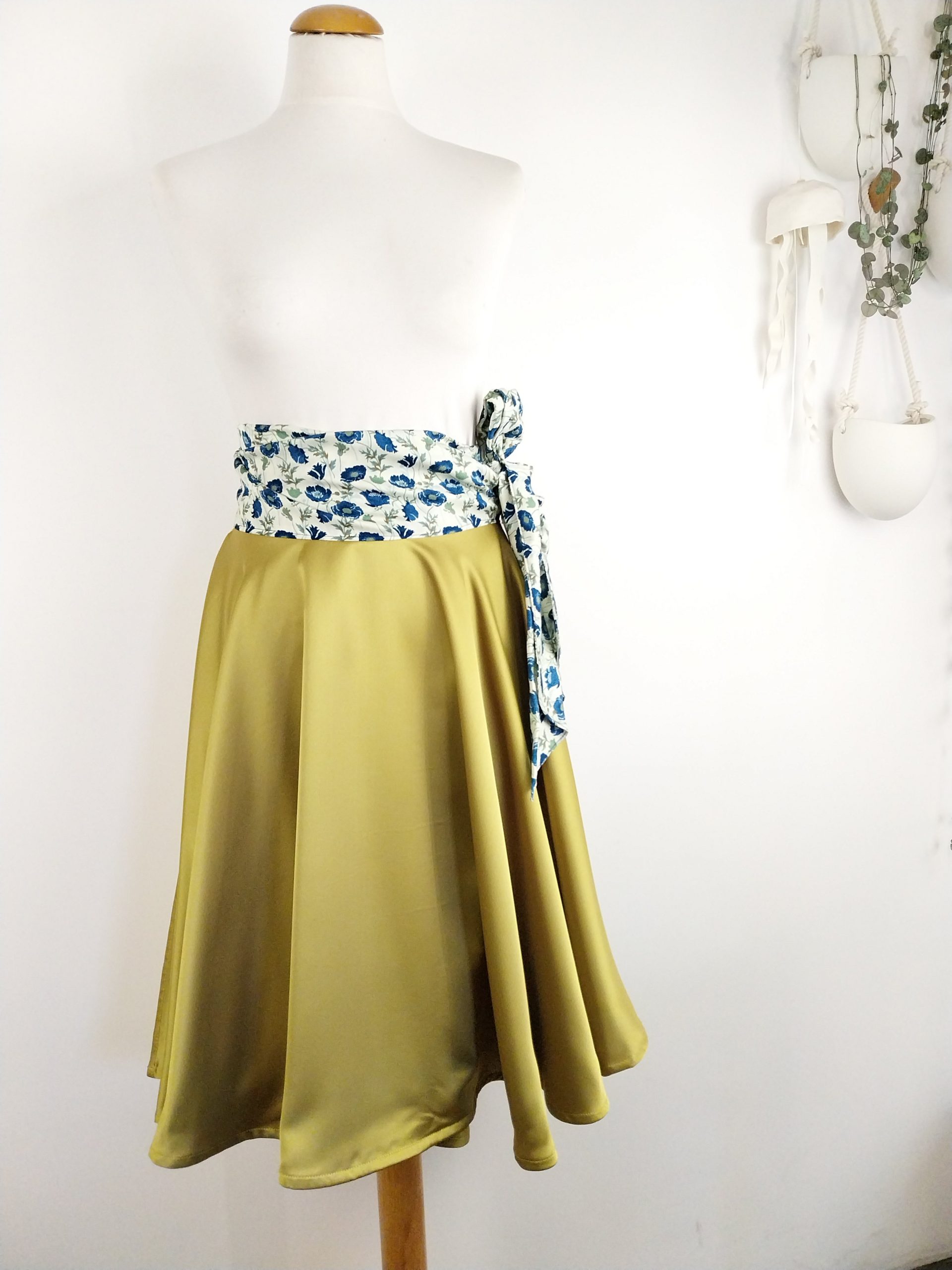 La jupe Tournesol est une jupe portefeuillequi tourne en taille unique.