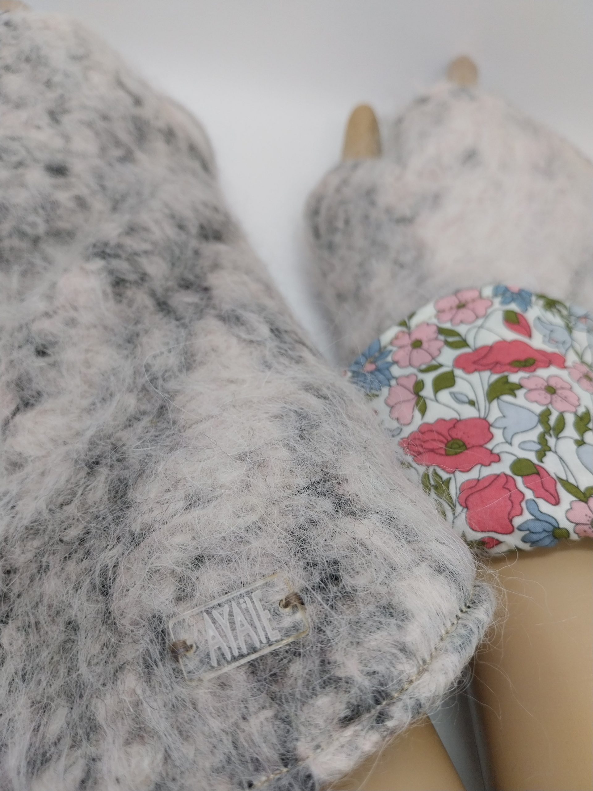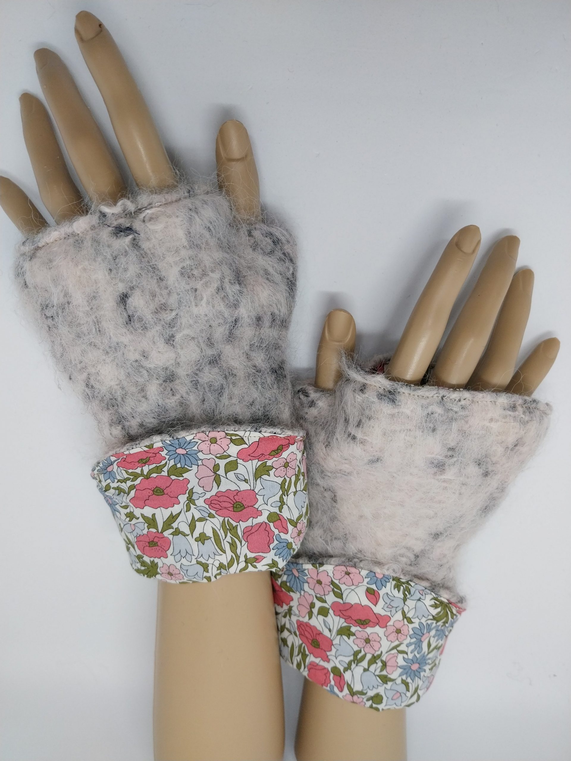 Mitaines n°26 de la marque Ayaïe. Pièce unique et originale réalisées en tissus surcyclés. Accessoire pratique et confortable
