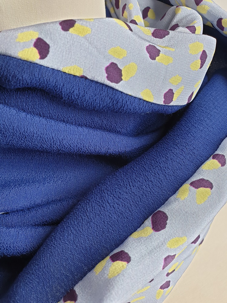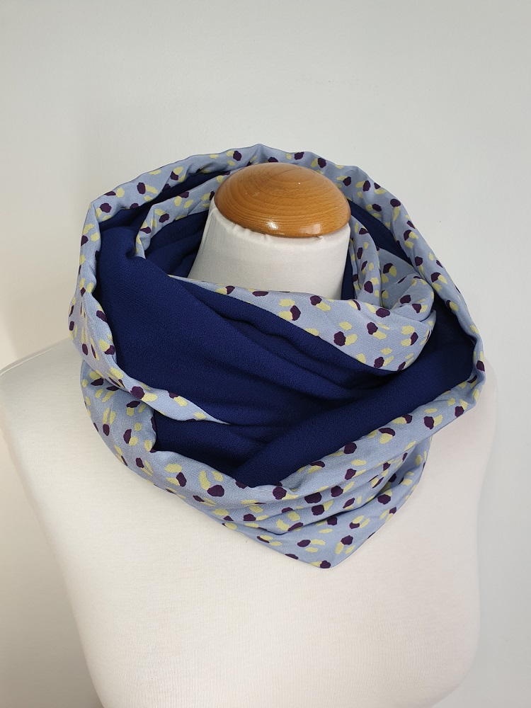 Ce snood est produit à partir de tissus issus de fins de séries textiles européens dans un esprit d’upcycling.