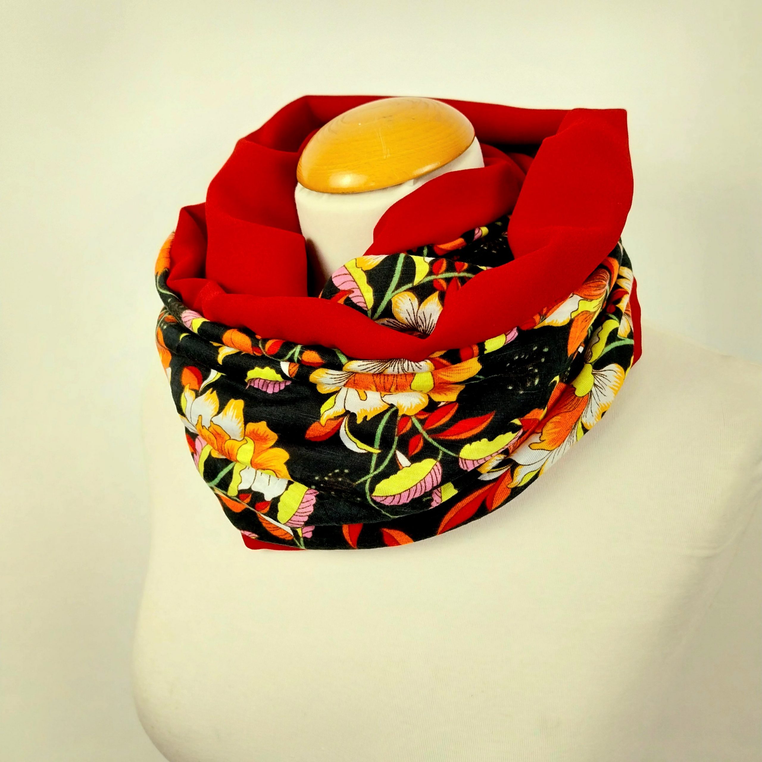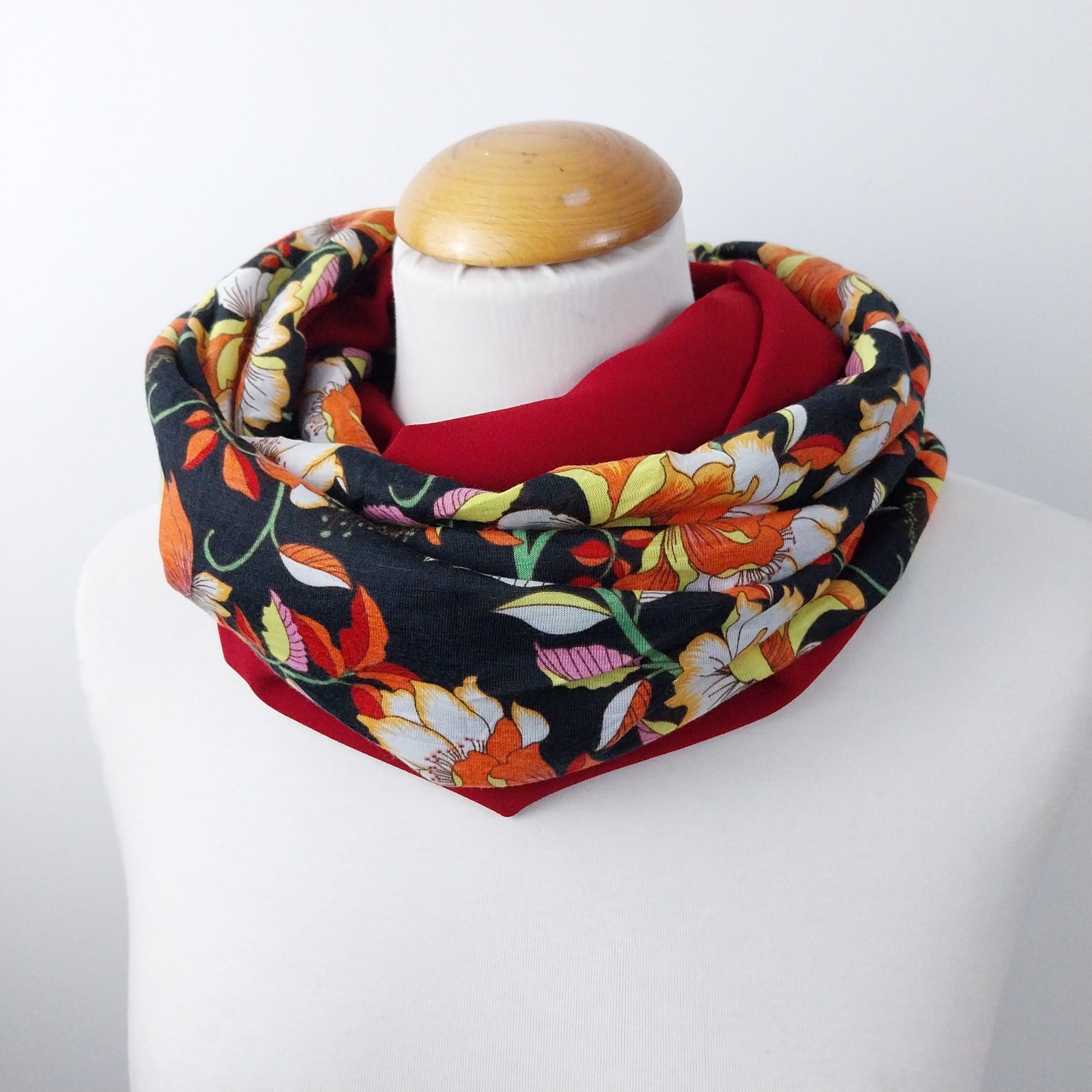 Ce snood est produit à 100% à partir de tissus issus de fins de séries textiles européens dans un esprit d’upcycling.
